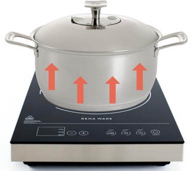 Ahorro hasta un 65% de energia Eficiencia en el consumo de energía, ya que utiliza la tecnología de inducción electromagnética para calentar los alimentos directamente en la olla o sartén, sin desperdiciar energía en el aire o en la superficie de la cocina.